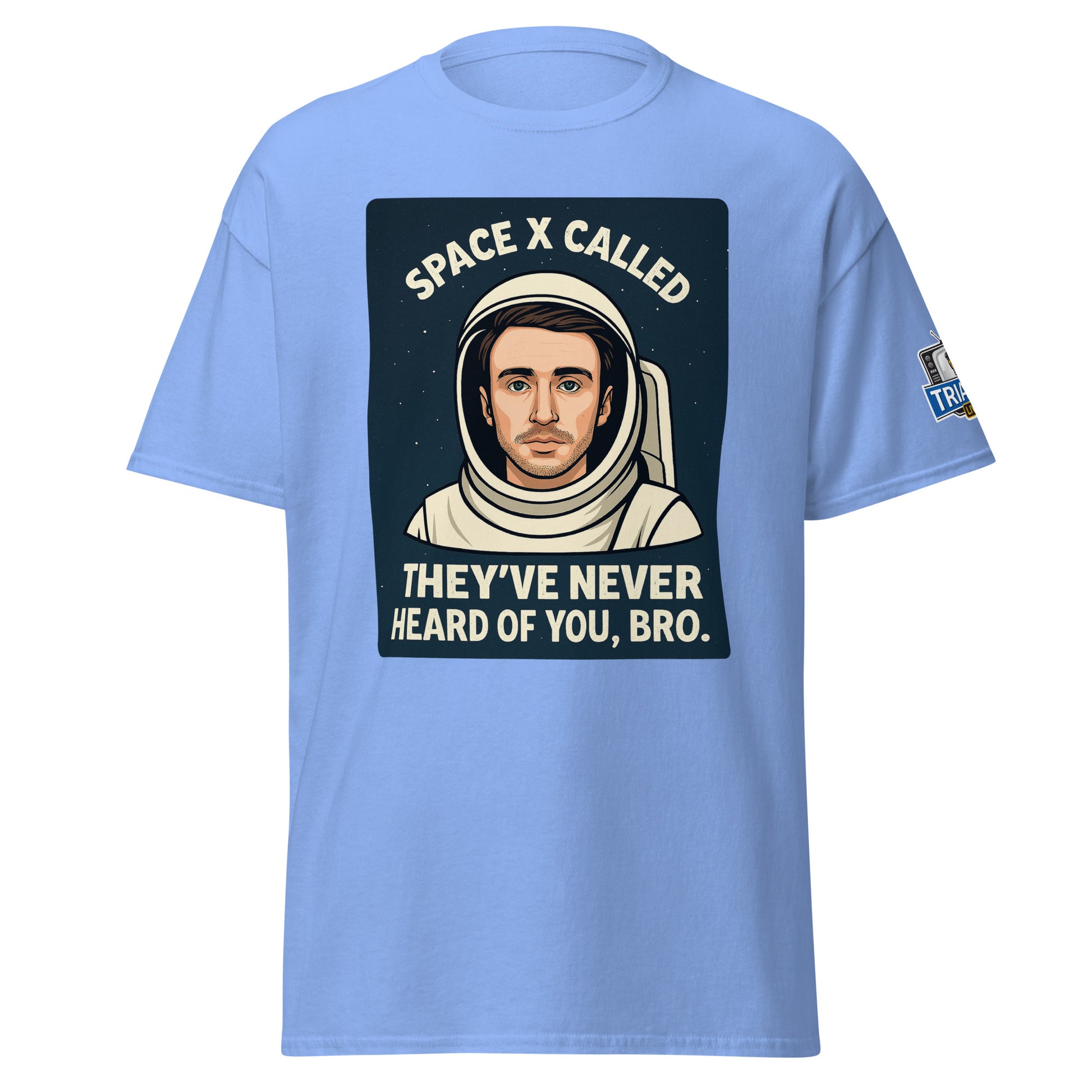 Blast off into pure snark with this bold, comic-style Space X Called design — inspired by Chandler Halderson’s infamous “SpaceX internship” lie. Featuring a stylized astronaut with Chandler-esque likeness and retro space-poster typography, this shirt delivers the punchline loud and clear: “They’ve never heard of you, bro.”