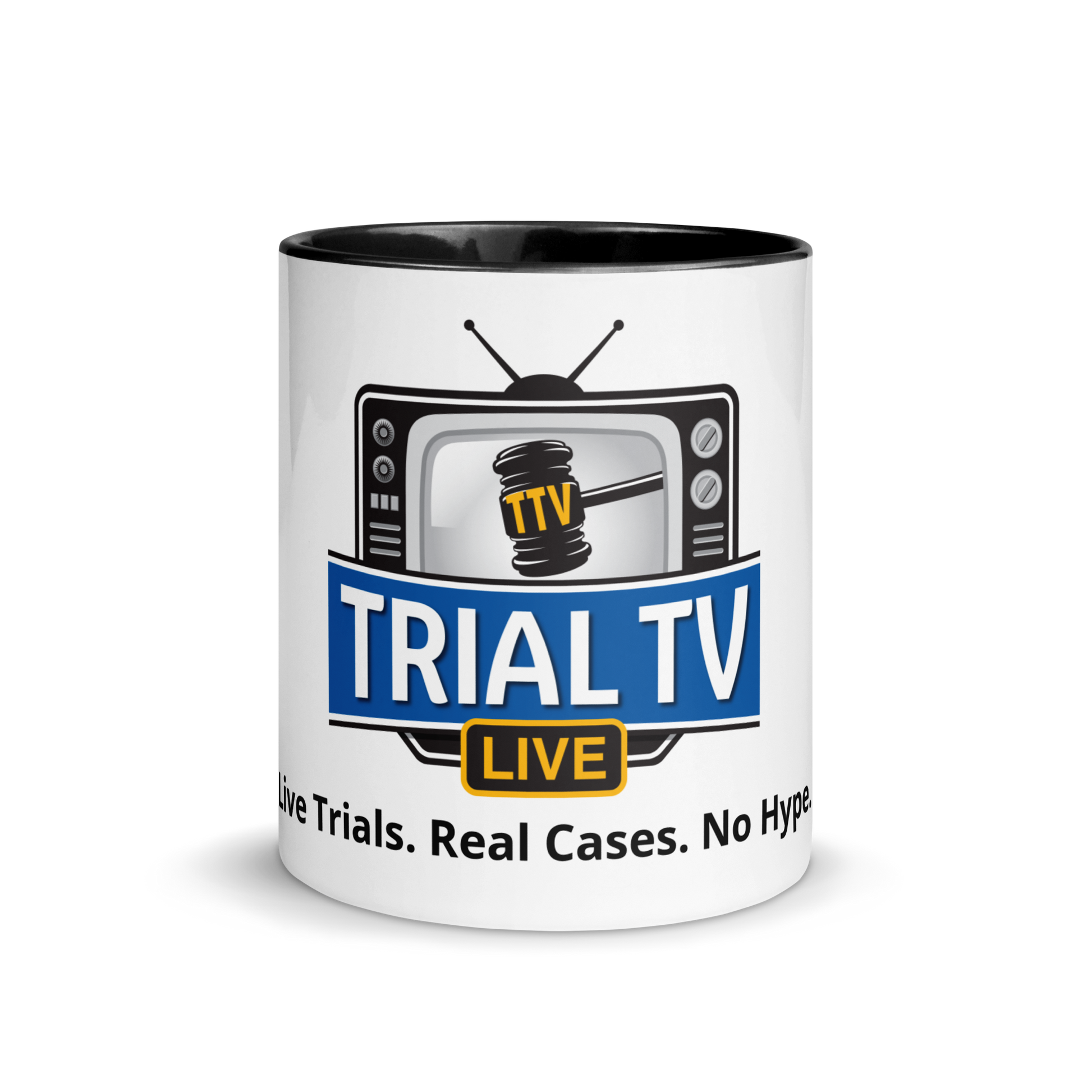 The Trial TV Live “Sip & Object” Mug adds the perfect pop of color to your daily ritual with a bold design and a vibrant interior available in black and red. Its colorful rim, handle, and inside make every sip feel a little more… objection-worthy.