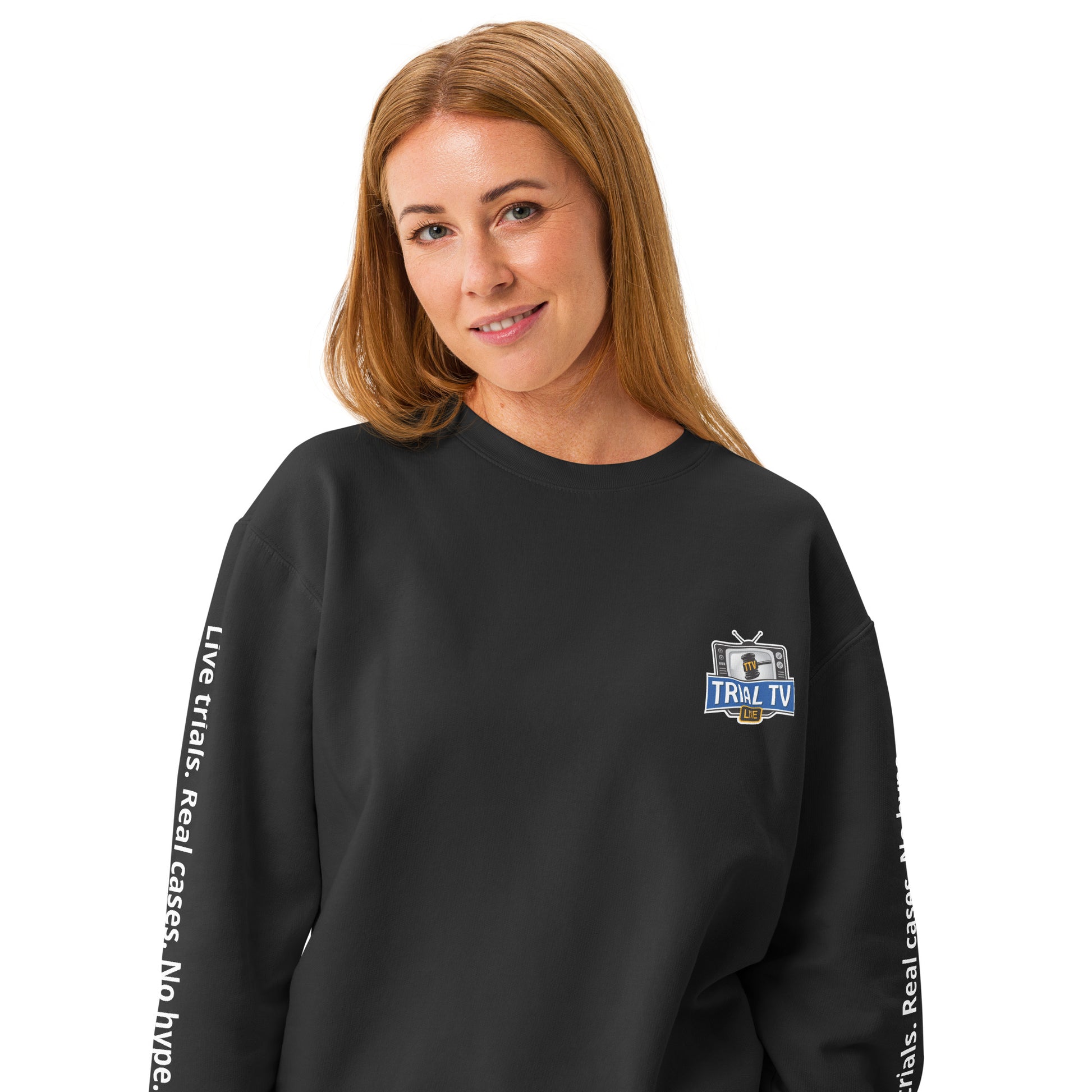 Your new go-to for long trial days, late-night verdict watches, and everything in between. This crewneck blends soft, easy comfort with the clean, bold style you expect from TTVL. Featuring a relaxed fit and drop shoulders, it’s perfect for layering up during chilly courtroom streams or lounging while you deep-dive the latest case.